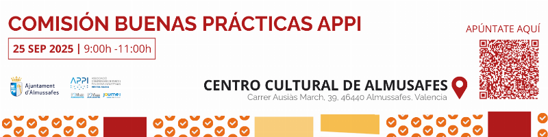 El día 25 de septiembre de 2025 a las 9:00h se celebra la Comisión de Buenas Prácticas, seguridad y emergencias APPI en el Centro Cultural de Almussafes (Carrer Ausiàs March , 39 46440 Almussafes Valencia):
